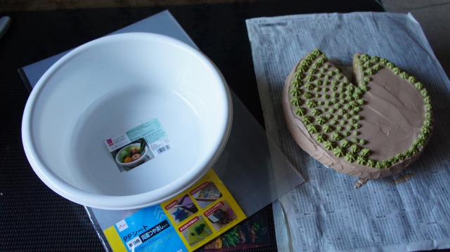 かと言って 、ケーキの デコレーションに ちょっとでも 触れないような カバー というか ケーキを 防御するものとして そのへんの物で 代用しようと すると 、案外 適当なものが 見当たらない 。