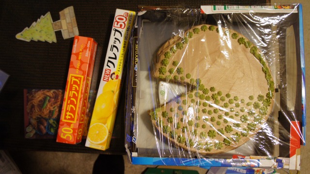 使った 素材が 、「チョコ・パイ」、「マカロニ・グラタン」、日本ハム・ファイターズの「ティッシュの箱」で あった為か 、